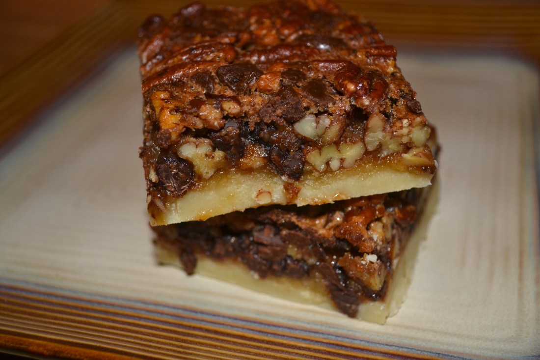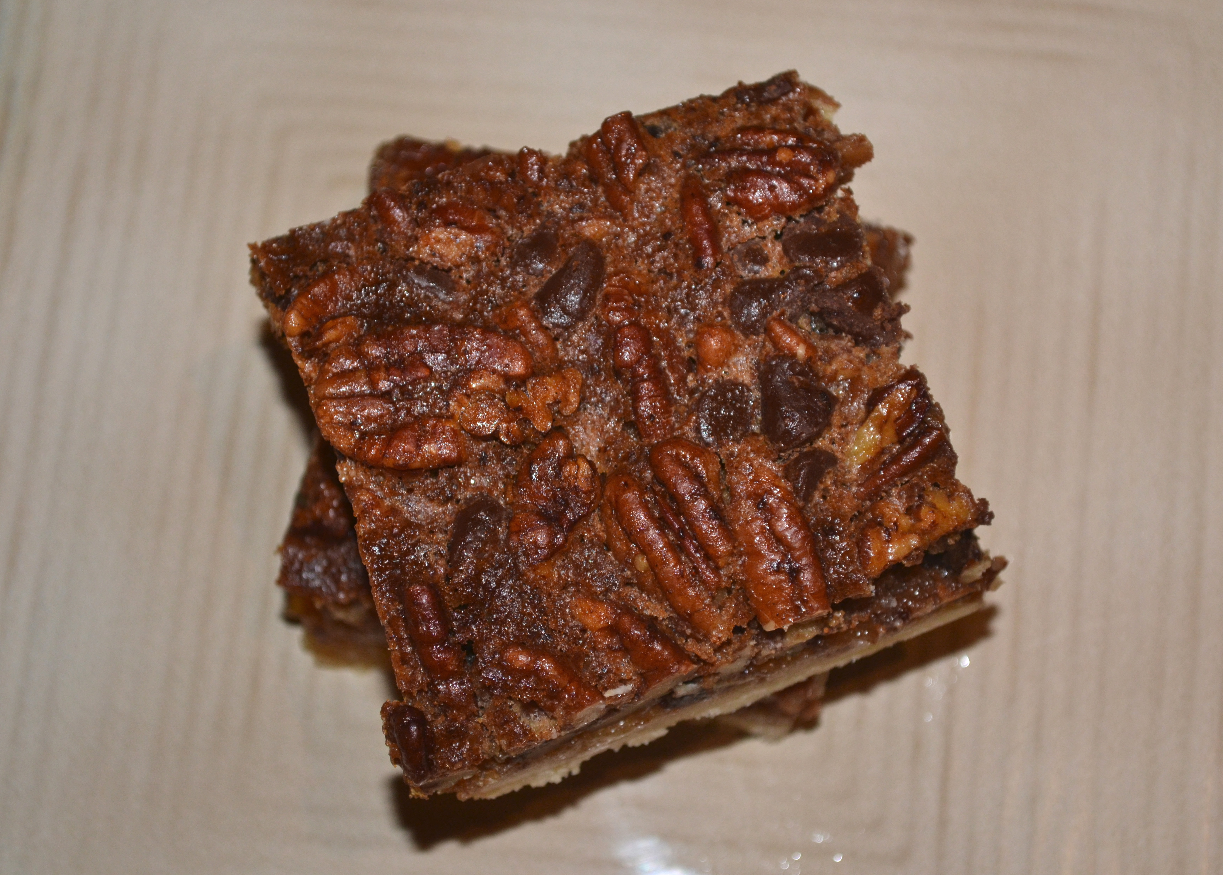 - Stir in the pecan halves and the chocolate chips and mix well.