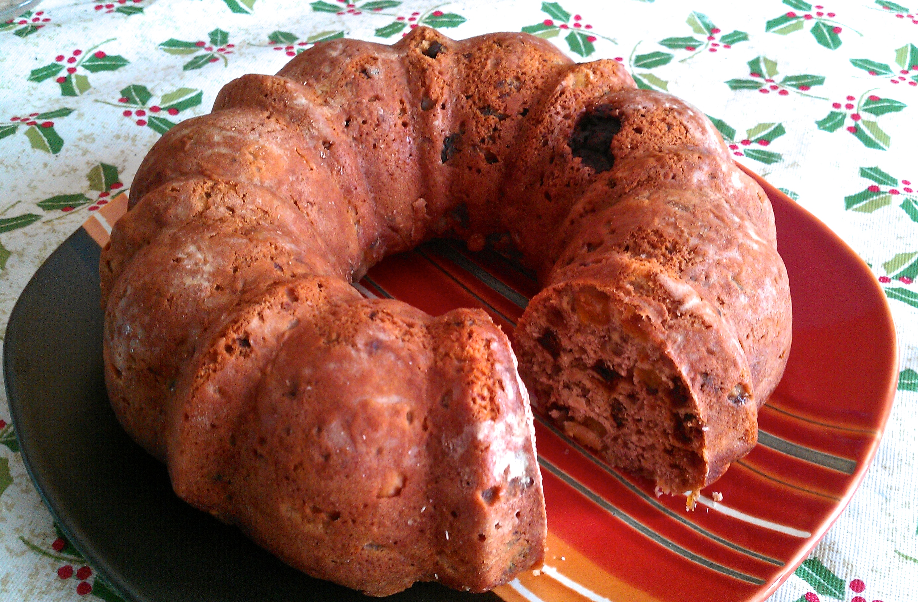 My dad is generally not a huge fan of desserts, but one thing he adores during the holiday season is fruitcake. He always receives the store-bought fruitcakes as a gift (the ones with the red and green cherries). I thought that this year I would make him a big fruitcake that he could enjoy endlessly. I am not an avid eater of fruitcake myself, but according to him this fruitcake is delicious and very tasty. Much better than the ones sold in stores, he claims. What I further like about this recipe is that it has many small steps but in the end, it is not so complicated. The hardest part, I think, is the 5-day waiting period before tasting it! I urge you to try this recipe if you or someone you know like fruitcakes.