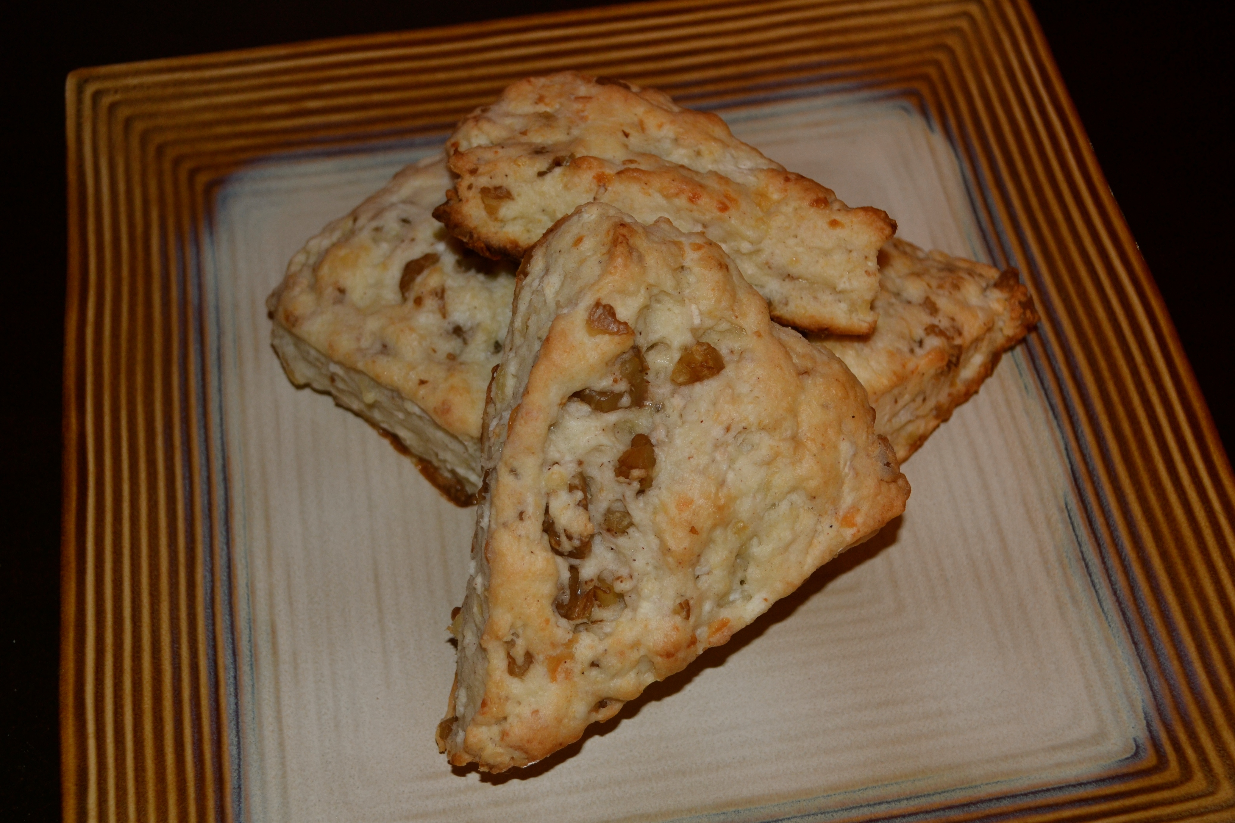 This weekend I had the good fortune of remembering that scones are delicious: crunchy on the outside yet moist and tender on the inside. As such, I made these apple cheddar walnut scones and was very pleased with the result! The cheddar cheese called for in this recipe adds a tangy kick that is very pleasing. I have found that scones are one of my favourite things to make because they require no eggs, not a lot of butter and they eat themselves!