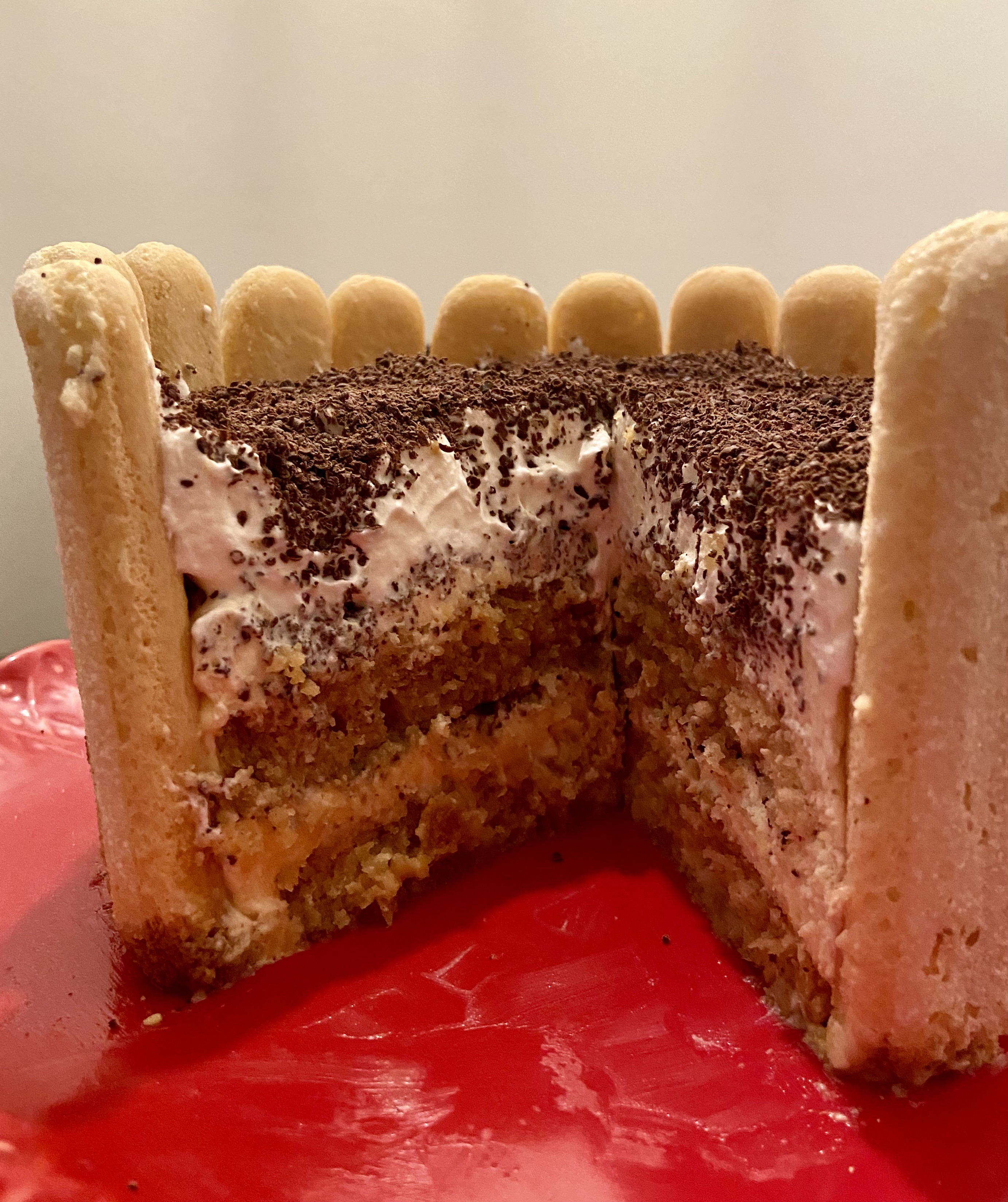 This is another one of the few recipes in the book that I flipped over many many times because of how intricate it appeared. I finally stopped putting it off in all honesty because I lost a bet with a colleague. The loser of this bet would have to cook or bake something of the winner’s choosing. My colleague chose a tiramisu, so that’s what I did! This was an interesting recipe to attempt, because not only have I never even had a tiramisu let alone made one, but I don’t like coffee so this is not a dessert that I would particularly enjoy myself. Nonetheless, I was excited to have a golden opportunity to finally make this classic dessert, with an Anna twist as it is a tiramisu torte rather than your typical tiramisu. The main difference is that the ladyfingers in this dessert surround the cake as opposed to forming a distinct layer within. I brought back a couple of bites for my husband to try and he said that it was amazingly delicious, so since I had some mascarpone cheese left I decided to make him a smaller, personal one. He absolutely loved it, as did my colleague, although in the first version of the tiramisu torte the coffee I prepared for the recipe was not strong enough.