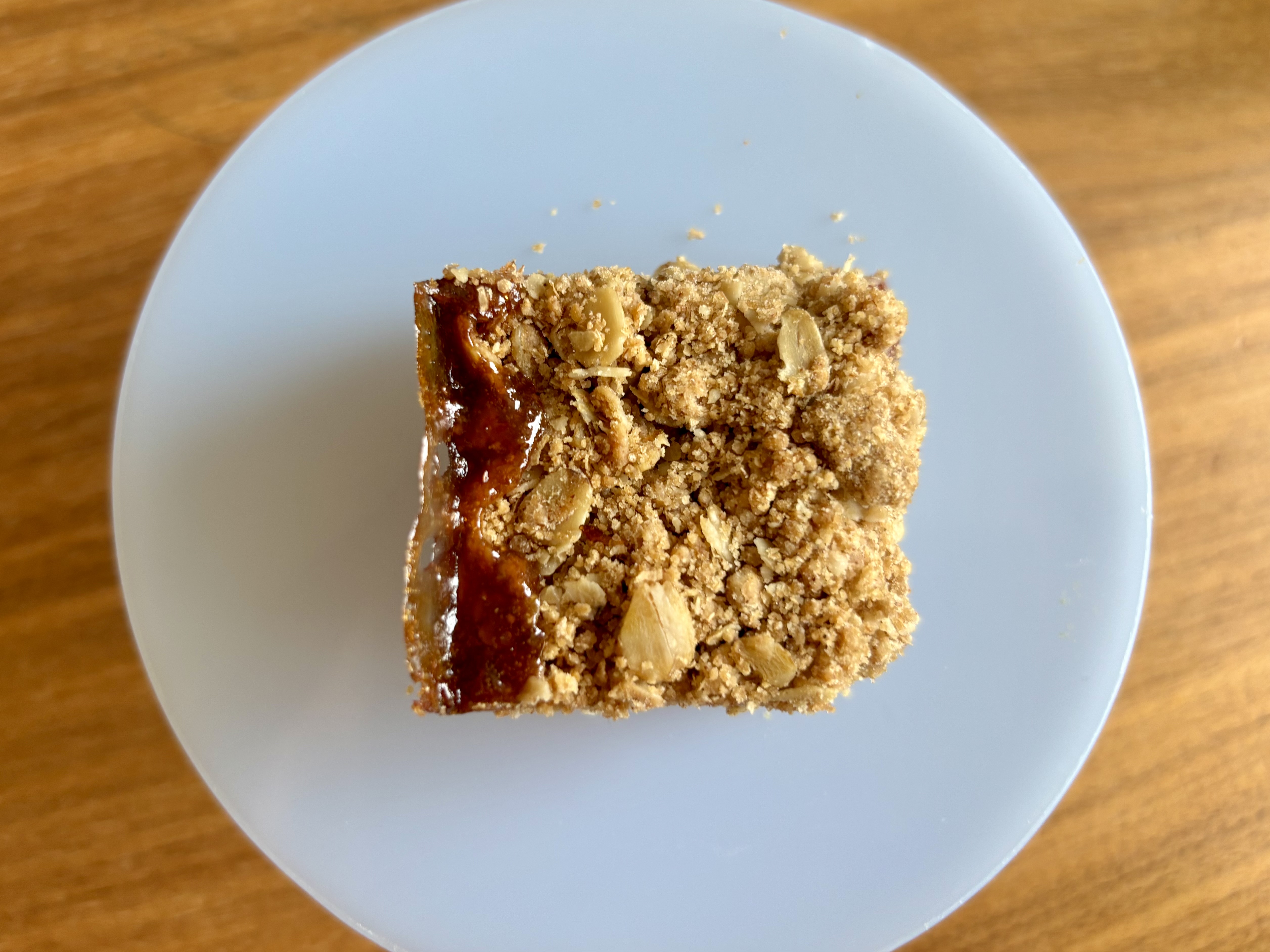 I enjoyed making these oat bars, but they didn’t turn out quite right for me. The oat mixture was much too crumbly and not wet enough. It was evident as I was pressing it into the pan and atop the strawberry preserves that it was not wet enough and I suspected, correctly, that it would not hold it’s shape much. I don’t know if it’s the specific almond butter that I used that perhaps was a different consistency and moisture, but I’d guess that a bit more of this or perhaps orange juice would have helped. In addition, although the bars were tasty, it is really the strawberry preserves that shine through as I did not detect much almond flavour myself. They were still pleasant to eat and they do not feel too heavy, but I do wish that the crumble held more it’s shape.