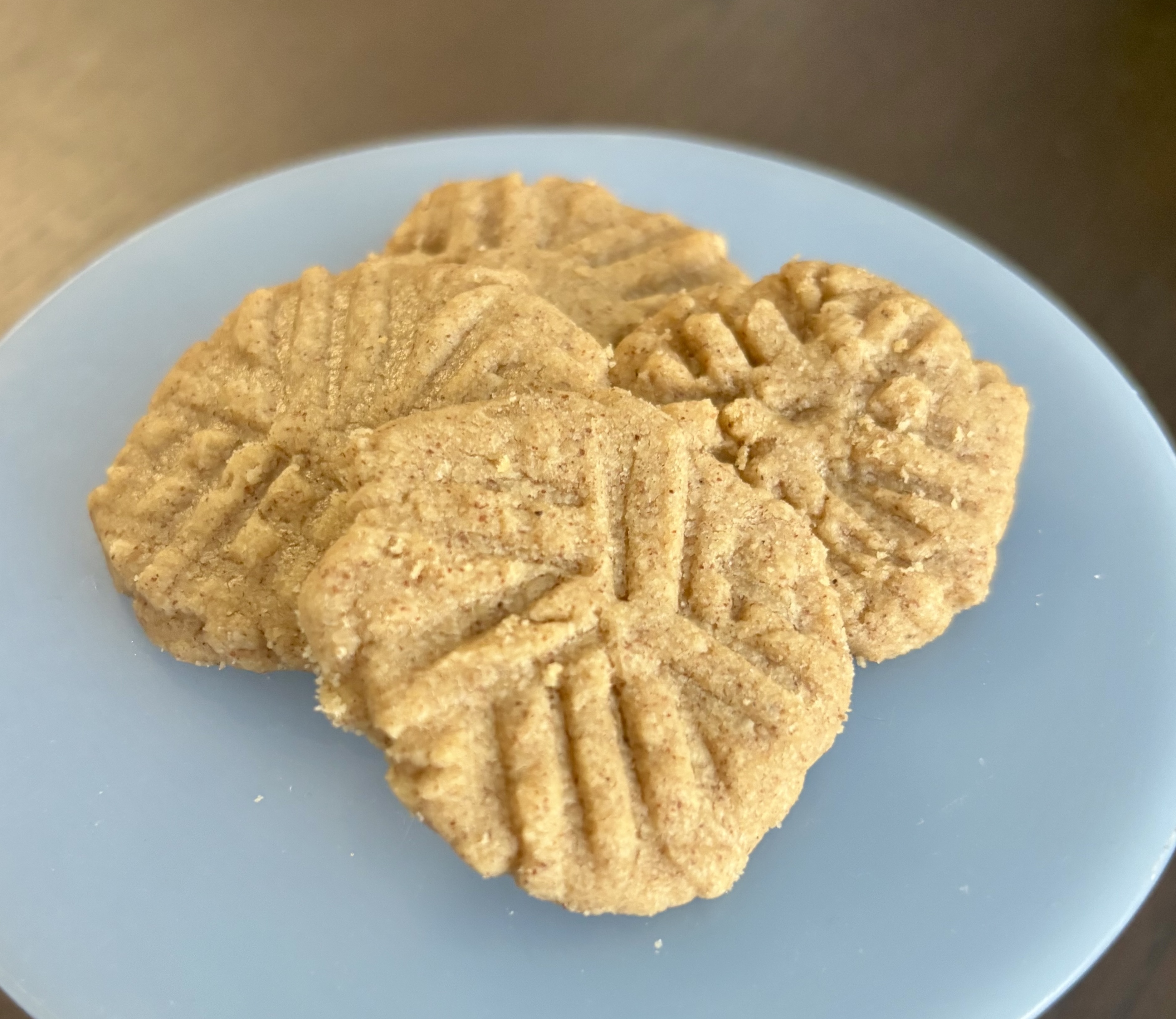These cookies are very delicious. Buttery, almost like shortbread cookies with a perfect balance of almond and vanilla extract. It can be dangerously easy to put too much of a pure extract and ruin a dessert but this was not the case here. Very easy to eat and to enjoy! I strongly recommend this recipe. I myself will most likely attempt it again with new almond butter to try to get the desired shape.
