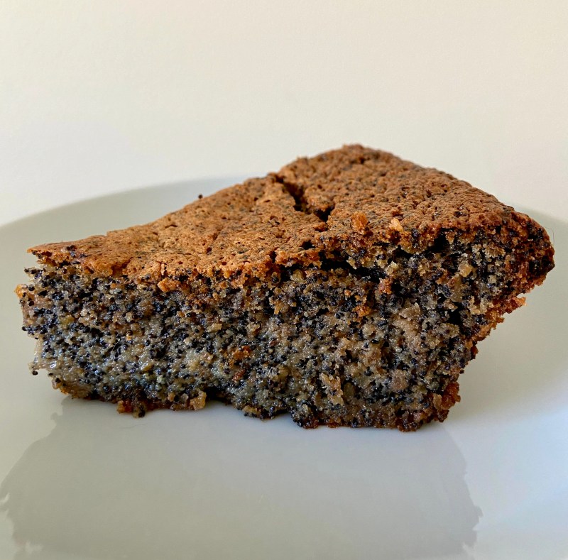 The cake was fun to make as it involves using a food processor to grind up the poppy seeds and walnuts, and I also do like folding in egg whites in recipes. I had some predicted technical problems because I did not have a 9-inch springform pan. Instead, I only had an 8-inch regular cake pan, but I really wanted to make this dessert for my boyfriend who was visiting since he loves poppy seeds and nuts.