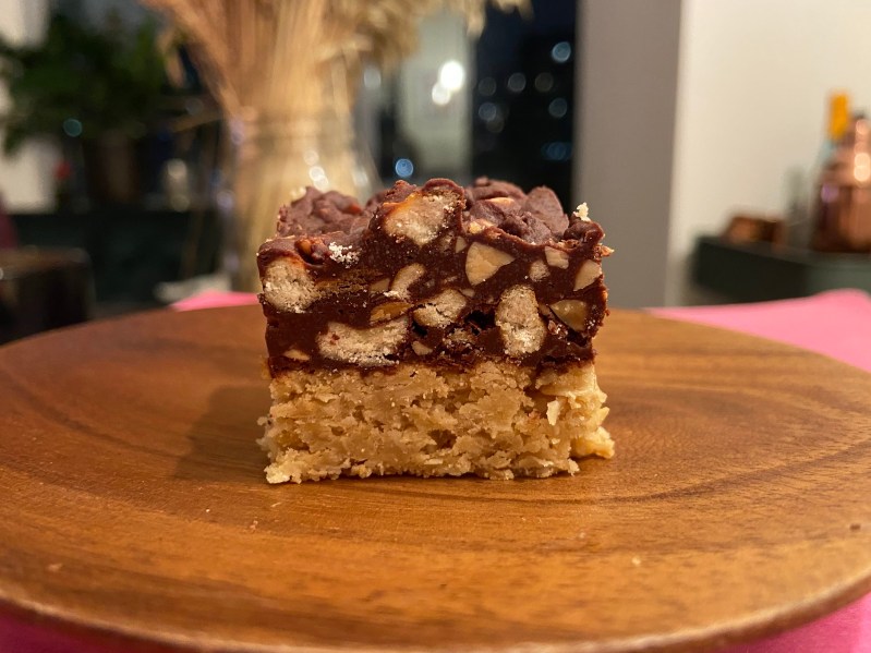 These chocolate peanut pretzel squares are very scrumptious, the perfect combination of sweet and salty, soft and crunchy. I had actually made it more than a month ago, but never got around to posting it. It was so good, however, that I had to make it again. Definitely a favourite.